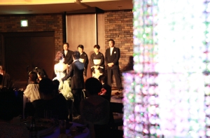 (→新郎新婦、高砂でボトルを持ち換え準備中)